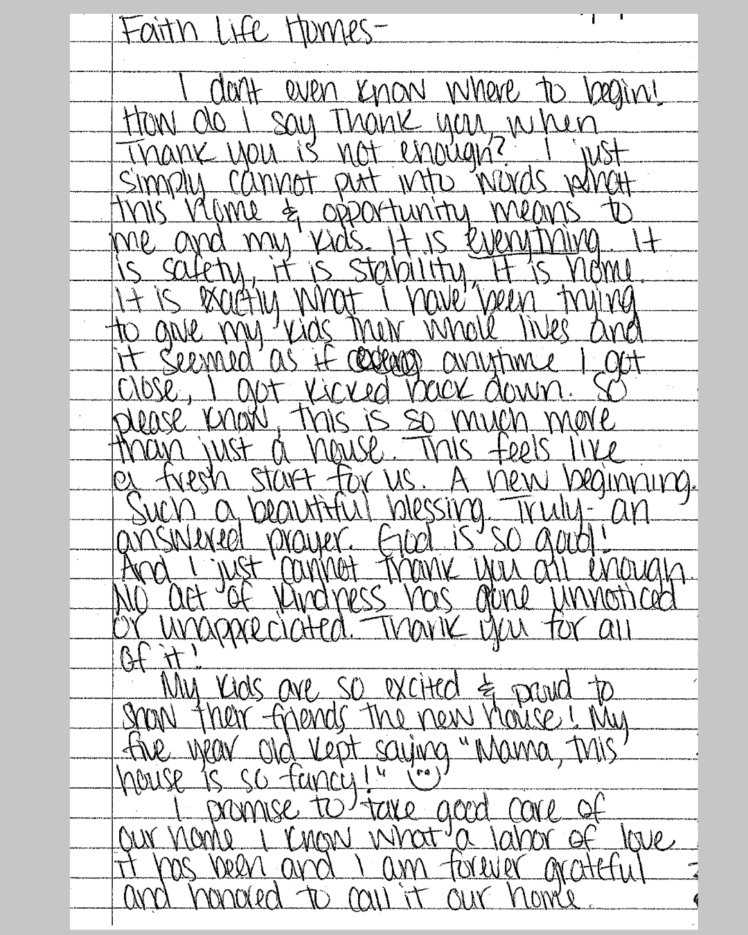 By intervening at specific obstacles in the pathway to homeownership, FaithLife Homes, LLC has created a path for families to move from instability to equity.